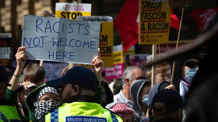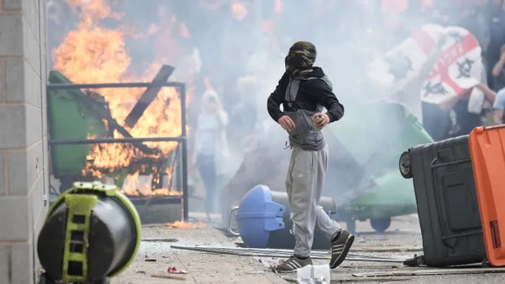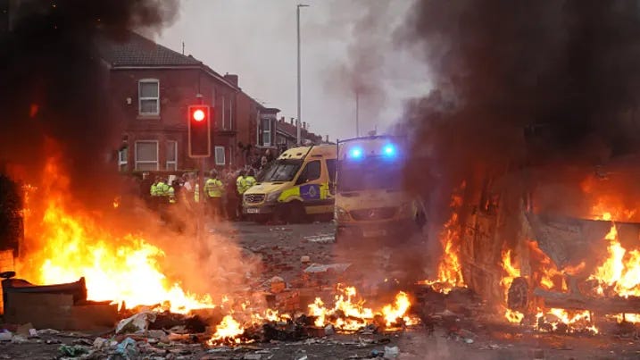 Riots and street violence started last week after false claims spread online that a mass stabbing last Monday, in which three young girls were killed, had been carried out by a Muslim asylum seeker who had arrived in the U.K. by boat.